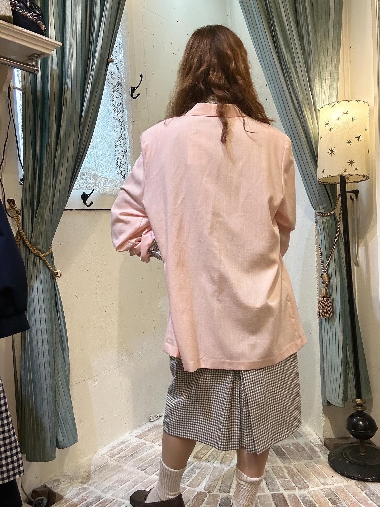 スカートやパンツで柄物が多いという方にはプレーンなカラージャケットを合わせると着回しがききます!